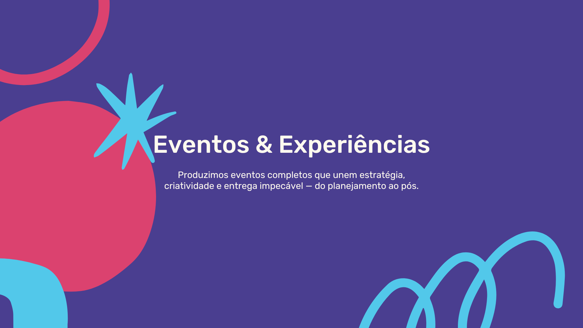 Combinamos planejamento, produção executiva, relacionamento e inovação para transformar ideias em experiências estratégicas.